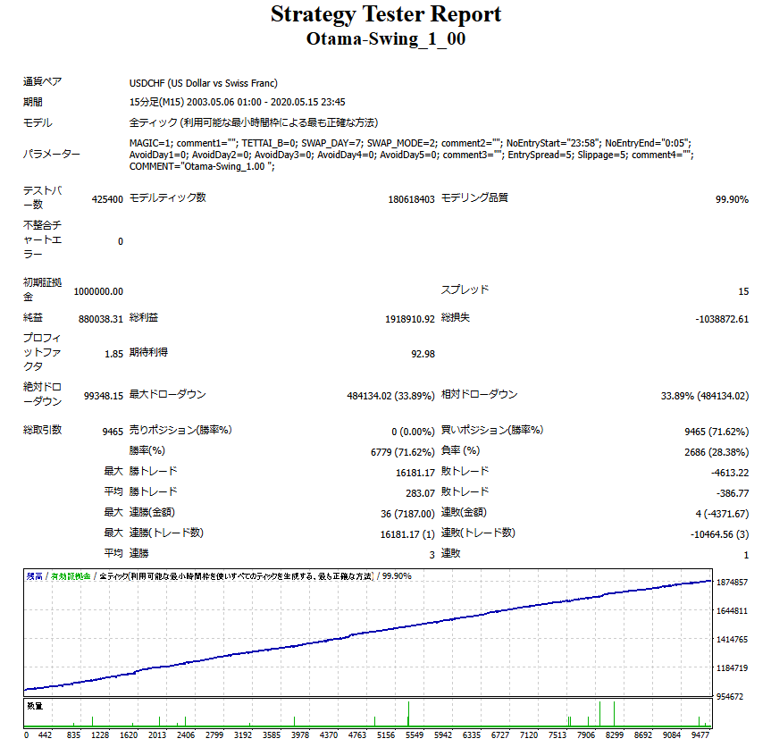 USDCHFのプラススワップポイントをじわじわ獲得していくことを狙った